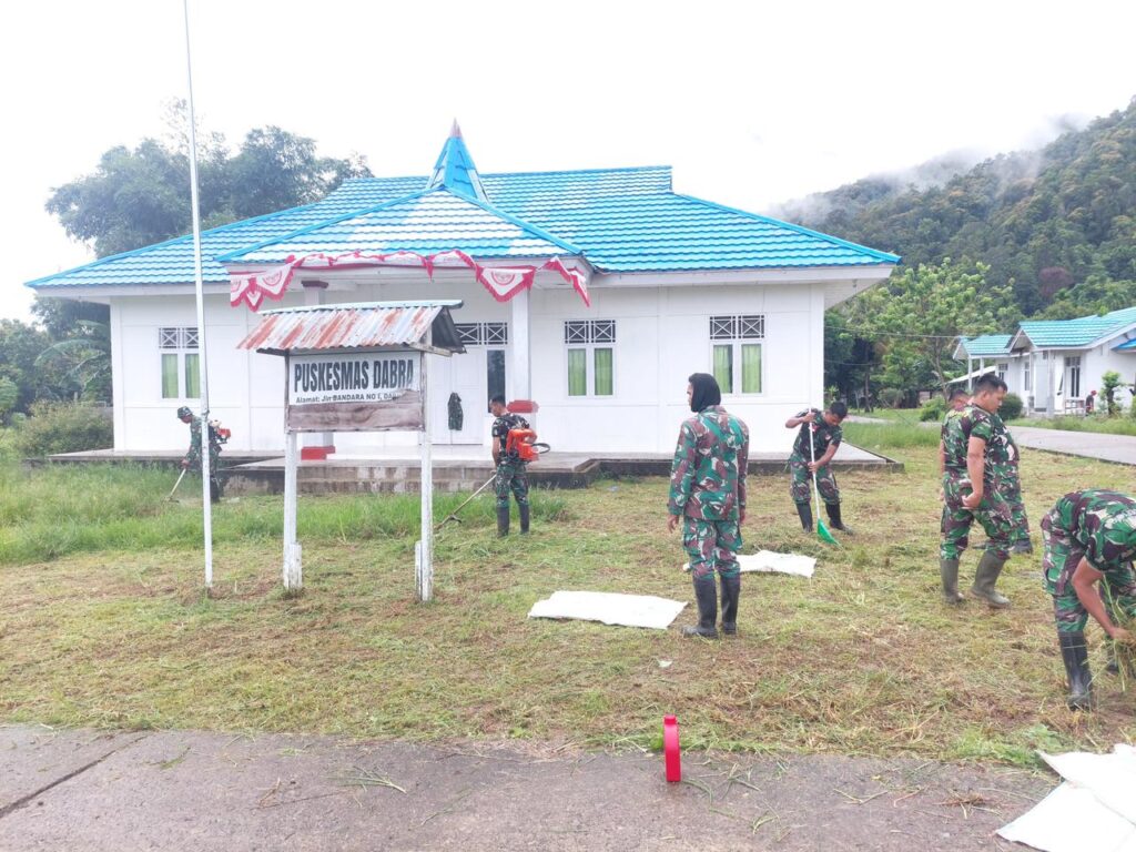 Mamberamo Raya ~ setelah beberapa waktu lalu personel Satgas berkunjung membesuk pasien yang ada di Puskesmas Dabra, kali ini Satgas Yonif Raider 142/KJ melalui Pos Dabra kembali melakukan suatu hal berbeda yaitu melaksanakan karya bakti di Puskesmas Dabra, Distrik Mamberamo Hulu, Kabupaten Mamberamo Raya, Provinsi Papua Pegunungan, Sabtu (14/01/2023)
