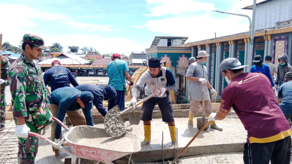 Dekai – Sebanyak 15 Personil Kodim 1715/Yahukimo dan Babinsa Koramil 1715-06/Dekai melaksanakan karya bakti dengan membantu masyarakat melakukan Pengecoran, Pembuatan WC dan kamar mandi Masjid At-Taqwa, Distrik Dekai, Kab. Yahukimo, Selasa (03/01/23).