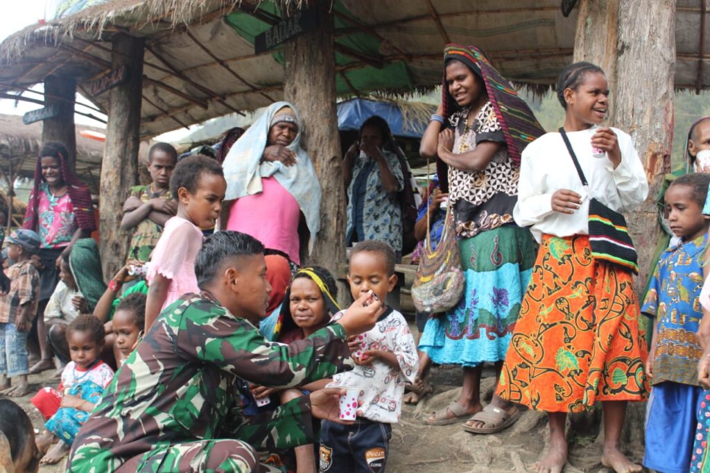 Kegiatan tersebut dipimpin secara langsung oleh Danpos Tima Lettu Inf Rio Justin bertujuan untuk mempererat hubungan tali silaturrahmi maupun memperbaiki gizi anak-anak di desa Tima Distrik Balingga Kabupaten Lanny Jaya.