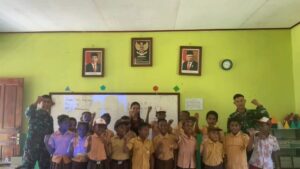 Kab.Keerom - Satgas Pamtas RI-PNG Sektor Utara Yonif 132/BS Pos Wembi melaksanakan kegiatan mengajar di SD YPPK Kp.Wembi, Distrik Mannem,...