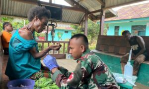 Keerom - Satgas Yonif 143/TWEJ dengan sigap memberikan pertolongan kepada mama Yustiana (48) yang mengalami luka-luka akibat penganiayaan oleh menantunya...