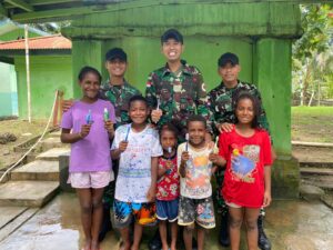Kab.Keerom - Satgas Pamtas RI-PNG Yonif 132/BS Mengajarkan pola hidup sehat kepada anak-anak di perbatasan Papua Kp.Arso Kota, Distrik Arso,...