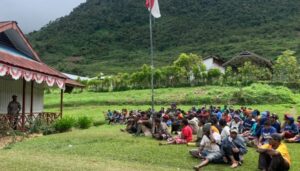 Wamena - Dalam rangka meningkatkan kepercayaan serta kemanunggalan TNI dengan Rakyat, Pasi Ter Kodim 1702/JWY Kapten Inf Nur Abdillah beserta...