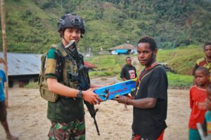Dalam rangka memfasilitasi minat para pemuda di pedalaman Papua untuk berolahraga, personel Pos Kotis Mbua Satgas Yonif Raider 321/GT/13/1 Kostrad...