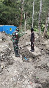 Wamena - Danramil 1702-05/Kurulu Kapten Inf Yubelinus Simbiak melaksanakan pengecekan bak penampungan air bersih di kampung Mumi desa Jiwika distrik...
