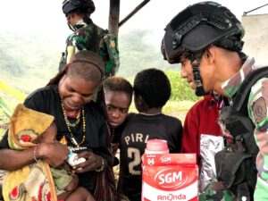 Peduli akan pertumbuhan dan kebutuhan gizi generasi muda Papua, Satgas Yonif Raider 321/GT/13/1 Kostrad Pos Yigi memberikan tambahan gizi berupa...