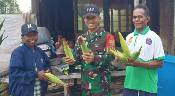 Dijelaskannya, selain melaksanakan kunjungan atau anjangsana ke rumah warga pada kesempatan ini Satgas Yonif 143/TWEJ memberikan bantuan makanan dan memborong hasil panen jagung warga dalam membantu peningkatkan pendapatan ekonomi warga.