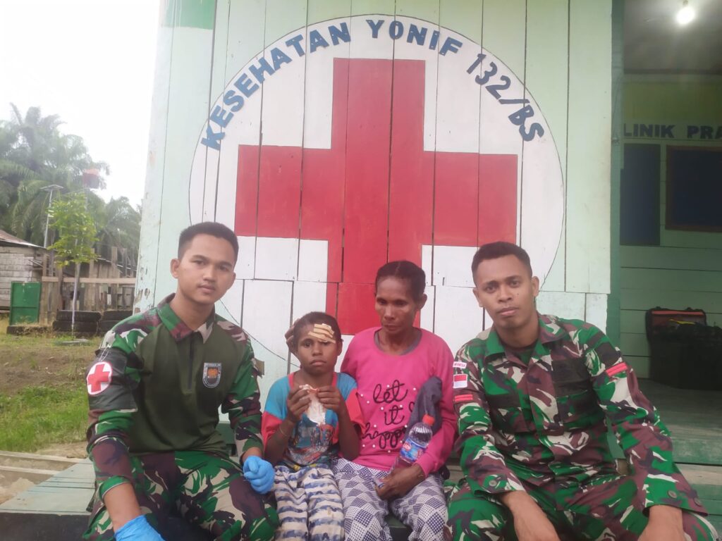 Kab.Keerom – Kesigapan Pos Arso Tami Satgas Pamtas RI-PNG Yonif 132/BS membantu mengobati anak kecil yang terluka di Desa Workwana, Distrik Arso, Kab.Keerom, Prov.Papua. Pada hari Kamis (05/01/2023).