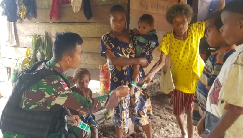 “Sebagai wujud kepedulian kami bantu warga layanan kesehatan, tambahan gizi dan sandang mengingat hal ini salah satu kebutuhan dasar yang harus terpenuhi,” ucap Serka Iwan Danpos Bompay.