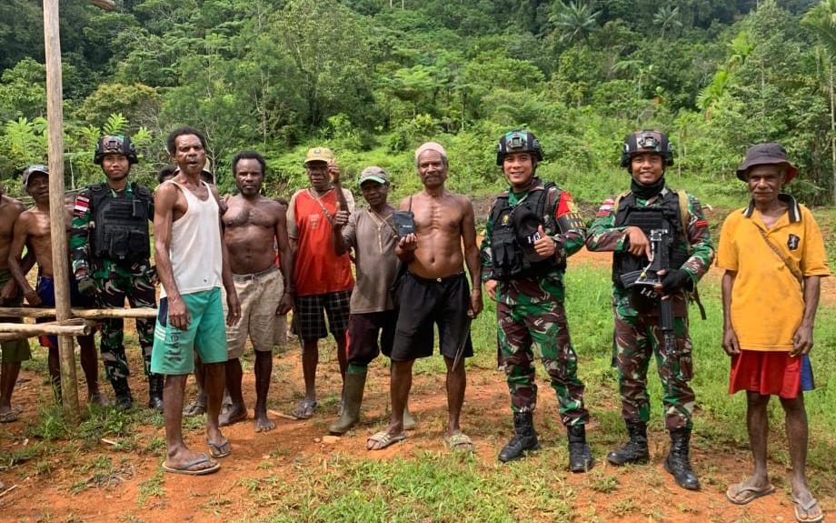 Kedatangan Anggota Satgas mendapat sambutan hangat dari para warga seperti diungkapkan ondo Api Kampung Yamrab II Agus Yumbon (47).