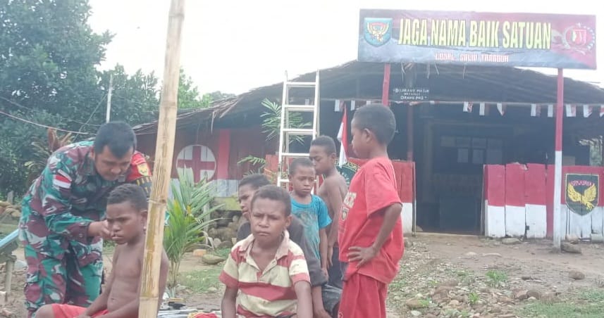 “Selain untuk menjalin komunikasi dengan semua kalangan masyarakat kegiatan ini kami lakukan guna memberikan pemahaman kepada anak-anak pelajar Kampung Tatakra akan kerapihan dan kebersihan sebagai cerminan disiplin dalam mengikuti pendidikan,” jelas Danpos Tatakra Satgas Yonif 143/TWEJ Letda Inf Michael Erlangga.