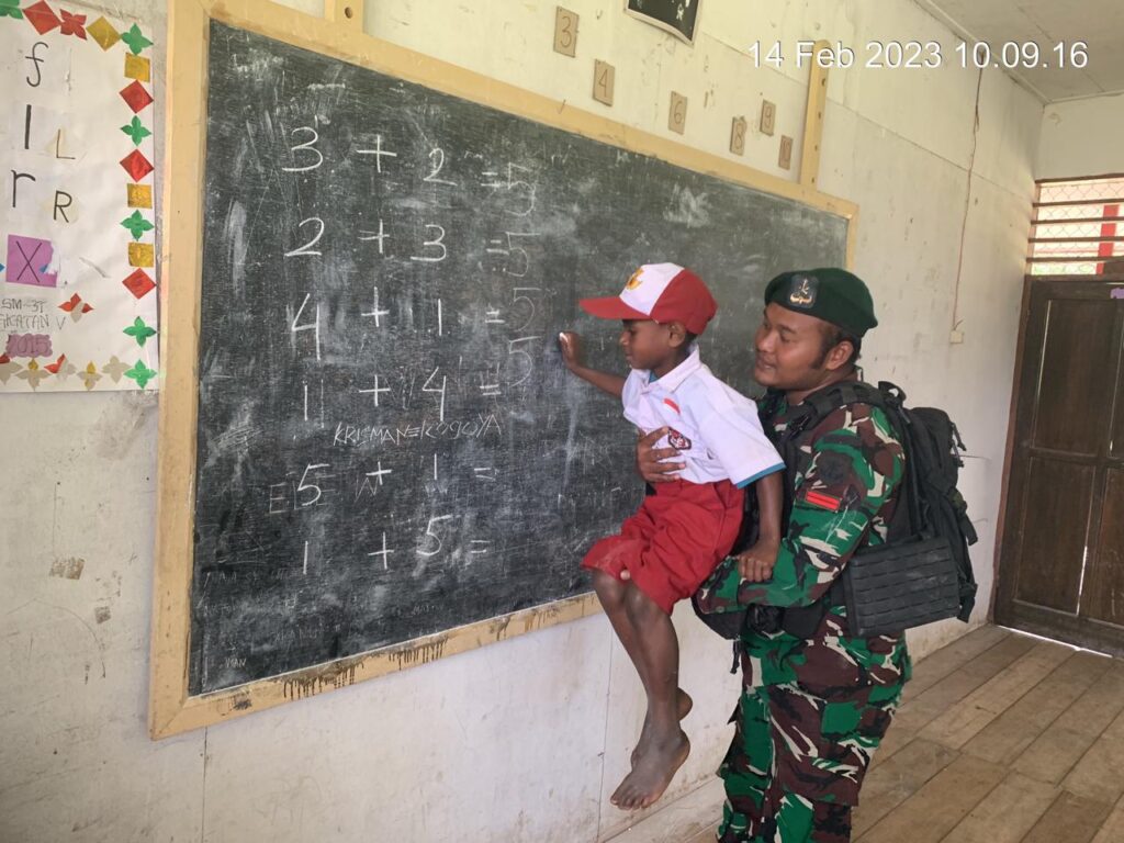 Minimnya tenaga Pendidik di Pegunungan Tengah salah satunya yang ada di SD YPPGI membuat Personel Pos Makki Satgas Yonif Mekanis 203/AK hadir untuk membantu mengajar dan memberikan pelajaran untuk anak-anak SD YPPGI, Distrik Makki, Kabuputen Lanny Jaya. Senin (27/02/2023)