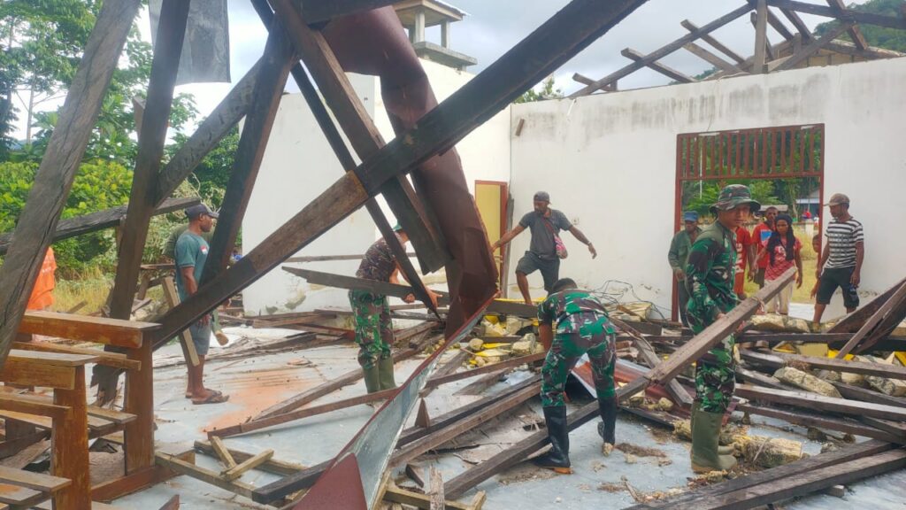 Mendapat informasi bahwa salah satu bekas bangunan gereja tua yang sudah lama tidak digunakan dan akan dibongkar, personel Pos Wembi yang dipimpin Serda Gilang Ramadhan datang untuk membantu masyarakat dalam pembongkaran gedung tersebut.