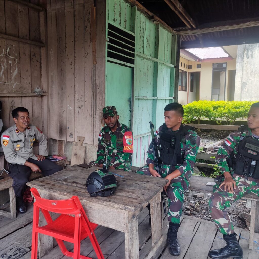 Mamberamo Tengah ~ Prajurit TNI Satgas Yonif Raider 142/KJ melalui Pos Kelila melakukan kunjungan ke Mapolsek Kelila guna terus menjaga silaturahmi dengan aparat yang ada di Distrik Kelila, Kabupaten Mamberamo Tengah, Provinsi Papua Pegunungan, Selasa (21/02/2023)