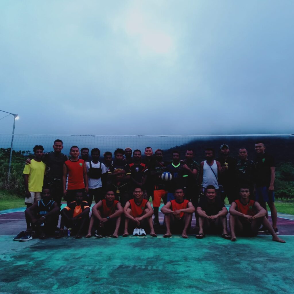 Skouw – Satgas Pamtas Yonif 132/BS melaksanakan pertandingan voli bersama pemuda Kp.Mosso guna meningkatkan keakraban yang sudah terjalin dengan baik, kegiatan bertempat Di Kompleks PLBN Skouw, Distrik Muara Tami, Kab.Jayapura, Provinsi Papua, Minggu (19/02/2023).