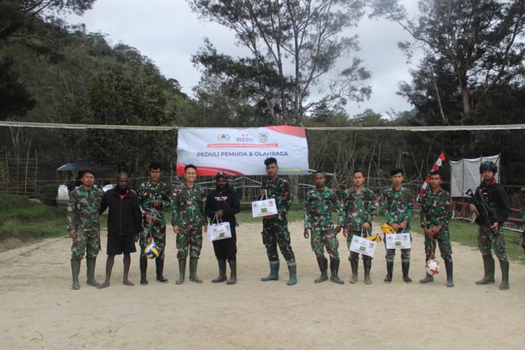Minimnya sarana olahraga yang dimiliki masyarakat Desa Tima membuat Pos Tima Satgas Yonif Mekanis 203/AK membagikan sarana olahraga berupa Bola Voly, Net Voly, bola takraw, bola kaki, hingga pompa bola kepada pemuda Desa Tima, Distrik Balingga Kab. Lanny Jaya.(22/02/2023)