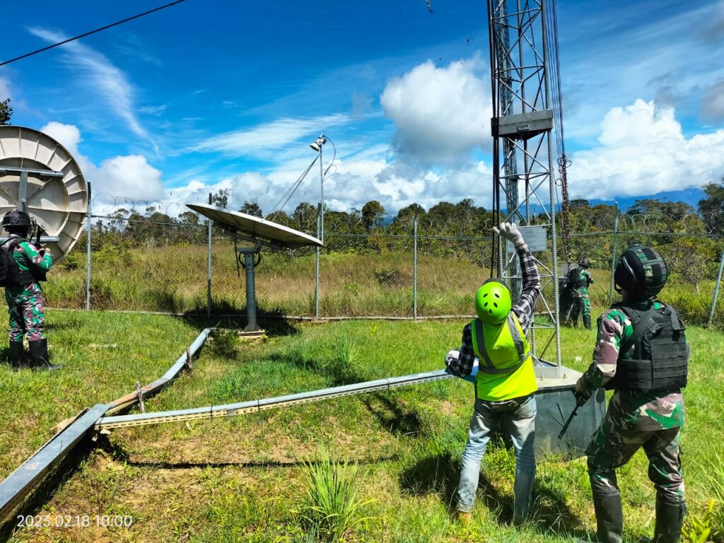 Mamberamo Tengah ~ Satgas Yonif Raider 142/KJ melaksanakan bantuan perbaikan Sinyal Tower Bakti Aksi yang berada di Distrik Eragayam, Kabupaten Mamberamo Tengah, Provinsi Papua Pegunungan, Senin (27/02/2023)
