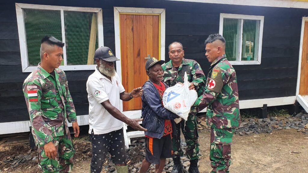 Membramo Tengah ~ Kepedulian Satgas Yonif Raider 142/KJ Pos Kelila terus dilakukan, kali ini dilakukan melalui penyerahan bantuan demi mendukung acara peresmian Rumah Gembala di Desa Timeria, Distrik Kelila, Kabupaten Membramo Tengah, Provinsi Papua Pegunungan, Sabtu (25/02/2023).