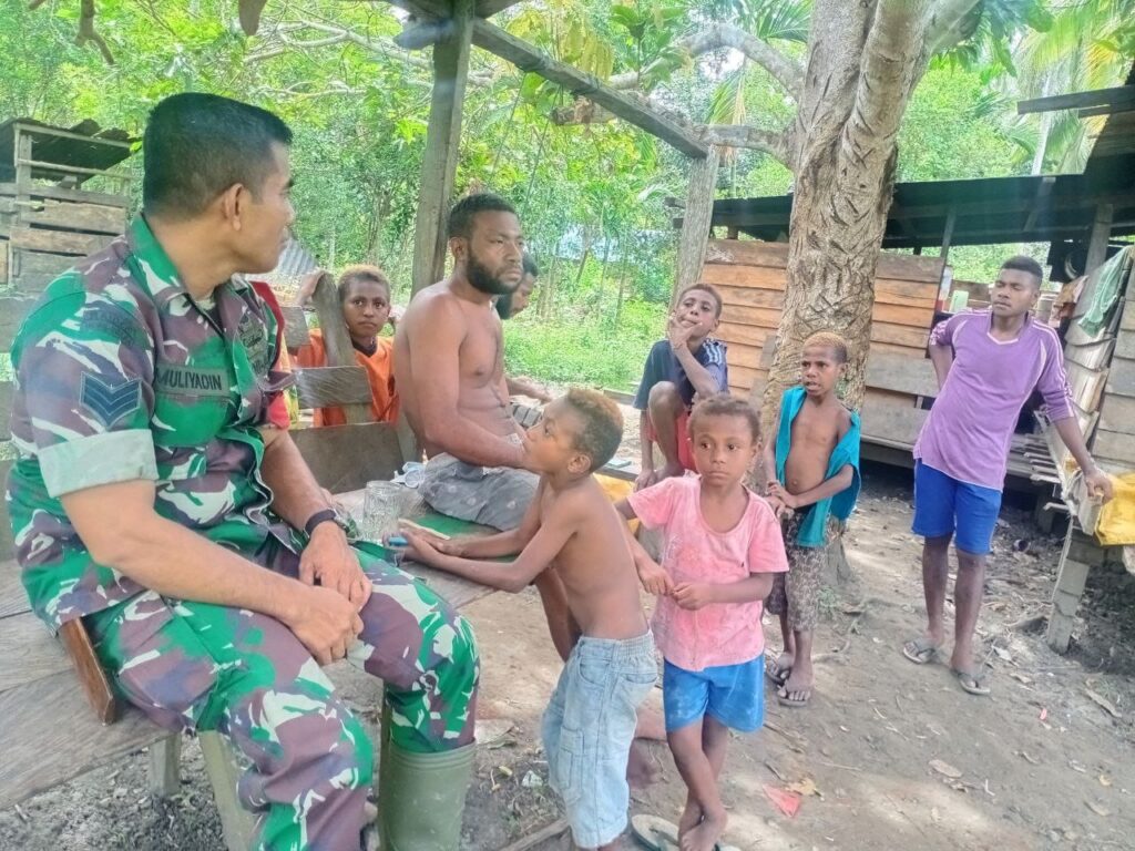 Sentani, selalu ada di tengah-tengah warga masyarakat merupakan salah satu tugas pokok Babinsa di wilayah binaan. Hal ini di lakukan Babinsa Koramil 1701-14/Kemtuk gresi, Serka Muliyadin melaksanakan kegiatan anjangsana di rumah keluarga bapak Yermias Wayambe dan bersama pemuda yang berada di kampung Skoaim Aimbe Distrik Kemtuk, kab Jayapura. Rabu( 15/3/2023 )