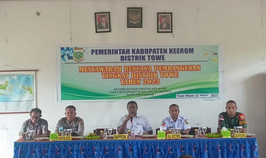 Musrenbang Distrik Towe Tahun 2023 yang dihadiri para pejabat Kabupaten Keerom ,TNI dan Polri ini memufakati rencana pembangunan Distrik Towe diantaranya Perenovasian SDN Inpres Towe Hitam, Pembangunan rumah untuk Kampung Towe Hitam, Pembangunan SPEL di Kampung Towe Hitam, Pembangunan jalan masuk lintas Provinsi menuju Puskesmas Towe, Perenovasian Gereja Katholik St. Yohanes, dan Program bantuan ekonomi untuk masyarakat berupa Koperasi dan Bahan makanan masuk kampung.