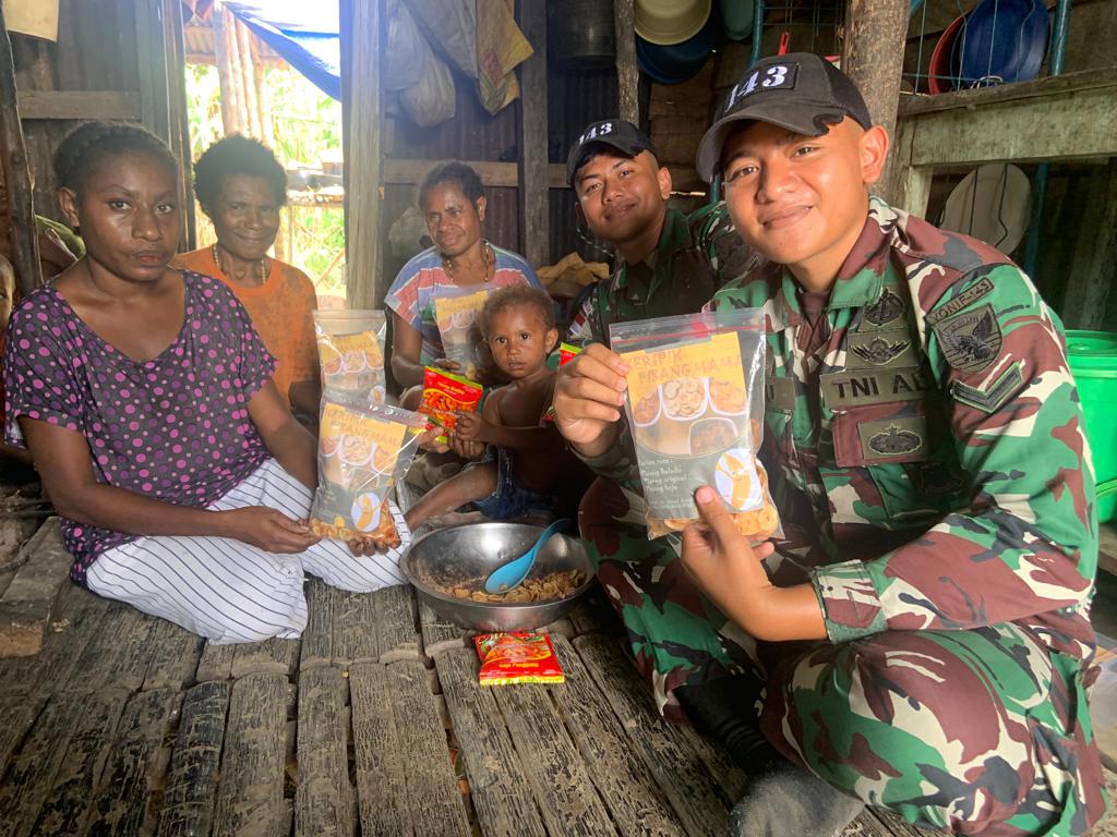 Anggota Satgas yang dipimpin oleh Sertu Afnan tersebut mendatangi rumah mama Maria Welip untuk mengajarkan cara membuat keripik pisang bernilai jual dan laku dipasaran sehingga dapat membantu meninggkatkan kesejahteraan warga.