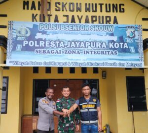 Skouw, Jayapura. Komunikasi yang positif dan erat antara Mayor Inf Zulfikar Rakita Dewa (Wadansatgas Pamtas Yonif 132/BS), Ipda Alexander Yarisetouw...