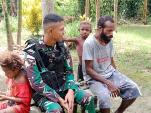 Kab.Keerom - Satgas Pamtas RI-PNG Yonif 132/BS Pos KM 76 mengunjungi dan menyapa masyarakat Kp.Uskuar, Distrik Mannem, Kab.Keerom, Provinsi Papua,...