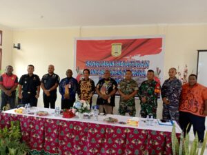 Jayapura - Satgas Pamtas Yonif 132/BS memberikan sosialisasi tentang Peraturan Lintas Batas Negara dan Daerah di Kantor Balai Badan Perbatasan...