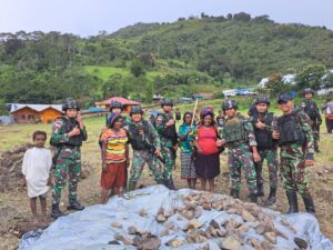 Tolikara ~ Sebagai suatu bentuk kepedulian, Satgas Yonif Raider 142/KJ menyatu dalam acara pernikahan dan prosesi adat Bakar Batu, bertempat...