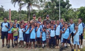 Keerom - Satgas Yonif 143/TWEJ Pos Yabanda melaksanakan kegiatan belajar dan mengajar dengan memberikan materi Peraturan Baris Berbaris (PBB) kepada...