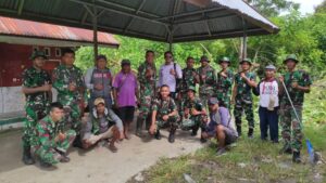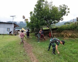 Keerom - Prajurit TNI dari Satuan Kompi Senapan A Yonif 756/WMS mengajak masyarakat melaksanakan karya bakti pembersihan lingkungan yaitu pembersihan...
