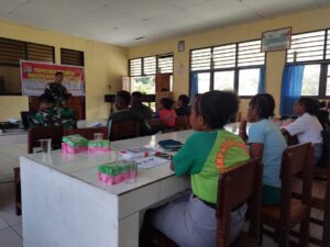 Keerom - sebagai wujud cinta kasih kepada generasi muda di Perbatasan RI-PNG, Satgas Yonif 143/TWEJ memberikan sosialisasi dan pembekalan tentang...