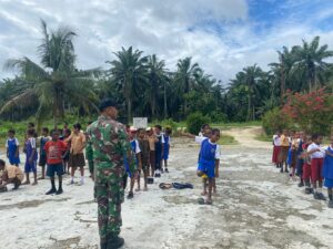Kab. Keerom - Satgas Yonif 132/BS Pos Arsokota hadir memberikan pelajaran baris berbaris dan bermain bersama siswa pada kegiatan ekstrakulikuler...