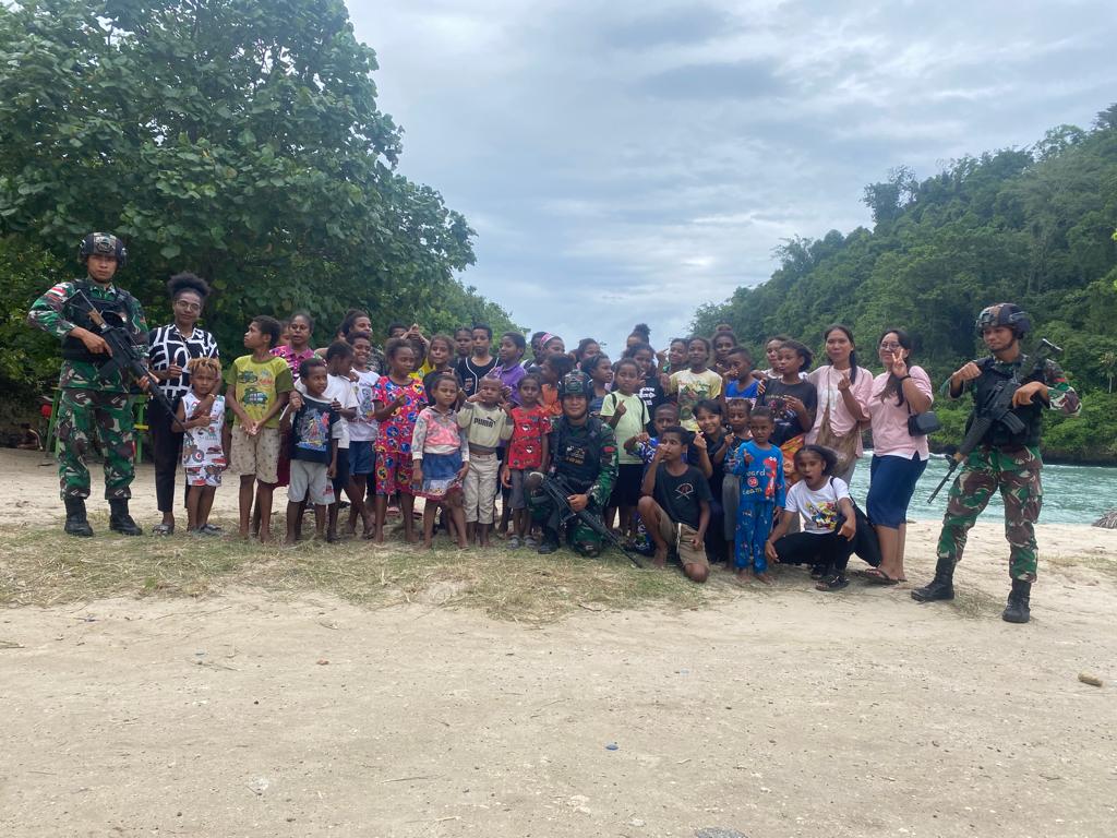 Anak-anak sekolah baik TK, SD, SLTP dan SLTA dari Yayasan Pelayanan Desa Terpadu (PESAT) sangat senang dan bergembira karena dapat naik kendaraan TNI dan bisa berinteraksi langsung dengan anggota Satgas selama acara ibadah.