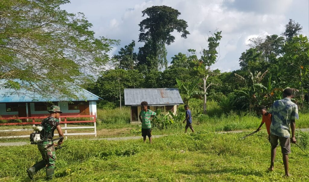 Keerom – Dalam rangka membina keharmonisan dan toleransi antar umat beragama, Satgas Yonif 143/TWEJ mengajak masyarakat membersihkan Gereja Katholik Santo Mikail di Kampung Bompay, Distrik Waris, Kab. Keerom, Papua, Kamis (30/03/2023).