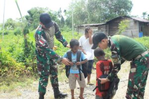 Kab. Keerom - Satgas Yonif 132/BS memberikan bantuan kepada masyarakat Distrik Mannem berupa baju merah putih dan tas sekolah. Kegiatan...