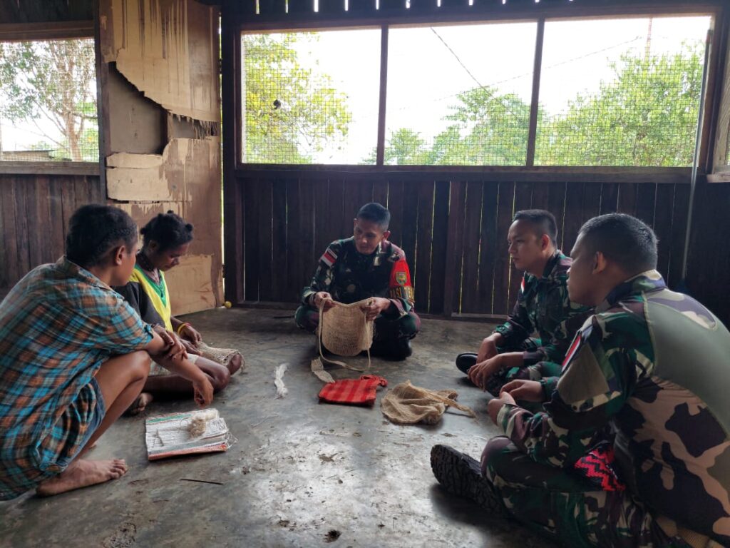 Keerom– Sebagai wujud kepedulian Satgas Yonif 143/TWEJ dalam membantu meningkatkan perekonomian masyarakat wilayah penugasan, Prajurit TNI melaksanakan anjangsana atau berkunjung dan sekaligus memborong hasil kerajinan Noken Tradisional di Jalur II SP I Kampung Woslay, Distrik Senggi, Kab. Keerom, Papua, Senin (10/04/2023).
