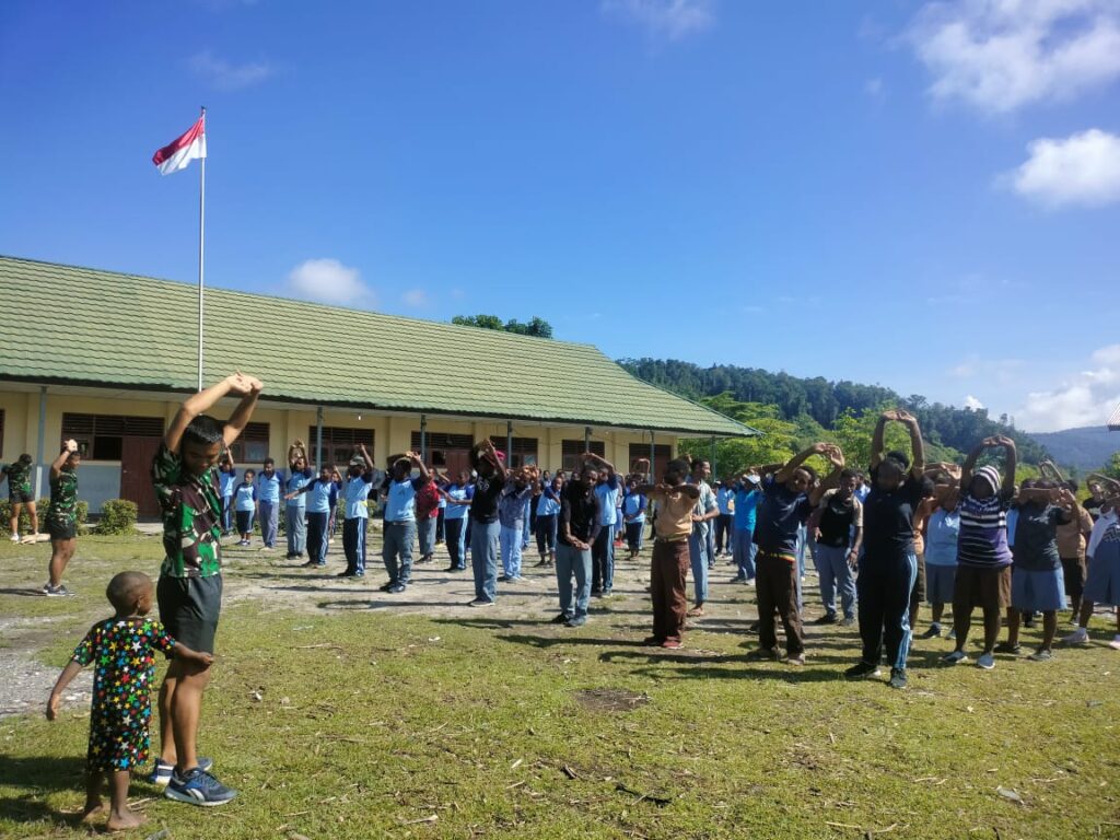 Yalimo~ di bulan Penuh berkah, Bulan Suci Ramadhan senantiasa kita terus melakukan hal-hal Positif, diantaranya dengan terus menjaga stamina dan fisik agar selalu terjaga, inilah yang diperbuat oleh personel Satgas Yonif Raiider 142/KJ Pos Kotis Elelim di SMAN 1 Elelim,. Distrik Elelim, Kabupaten Yalimo, Provinsi Papua Pegunungan, Senin (10/04/2023)