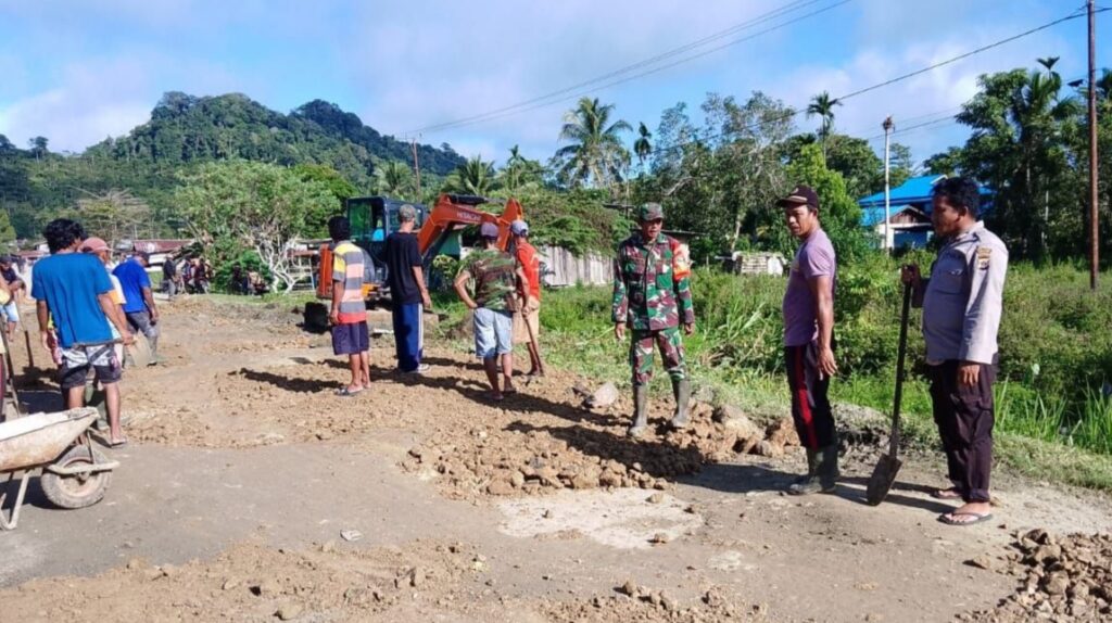 SENTANI – dalam rangka membersihkan lingkungan dan menyambut perayaan Hari raya Idul fitri, Babinsa Koramil 1701-13/kaureh, Serda Saidinor bersama Bhabinkamtibmas melaksanakan kegiatan kerja bakti Jum’at bersih babat rumput dan meratakan timbunan bersama warga masyarakat Ongan Jaya, Distrik Yapsi, Kab Jayapura. Jum’at (14/4/2023).