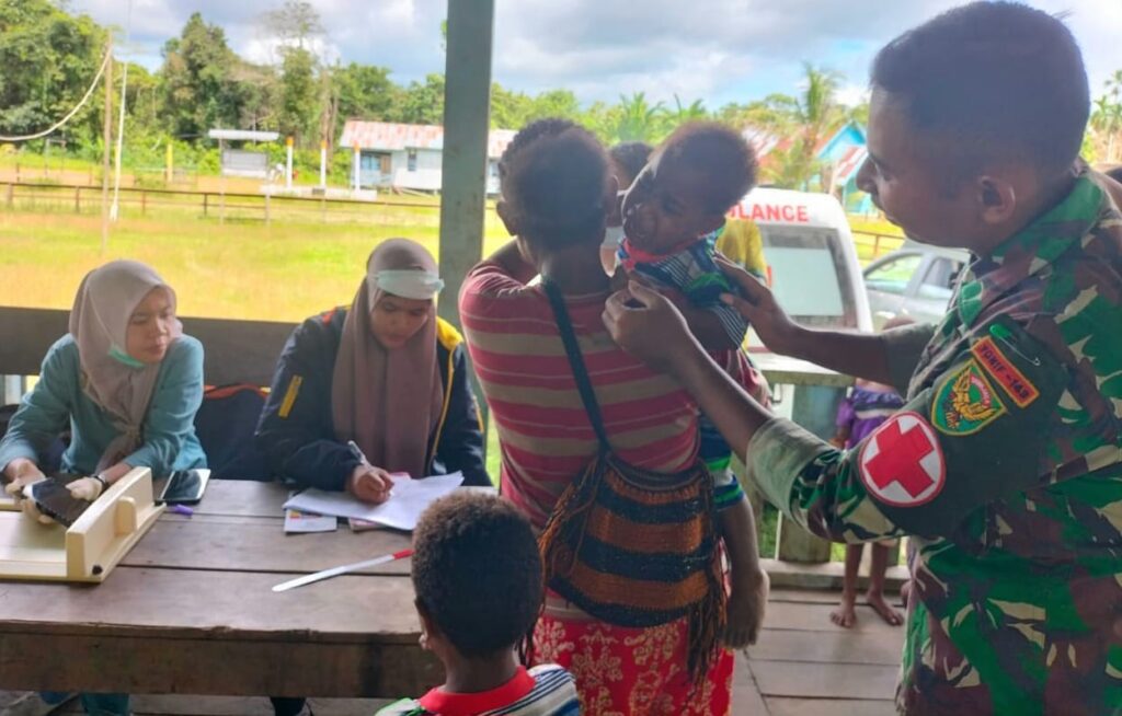 Kegiatan yang dipimpin oleh Dokter Satgas Yonif 143/TWEJ Letda Ckm dr. Made Banu Pati dibantu dr. Jesica beserta tim dari Puskesmas Senggi.