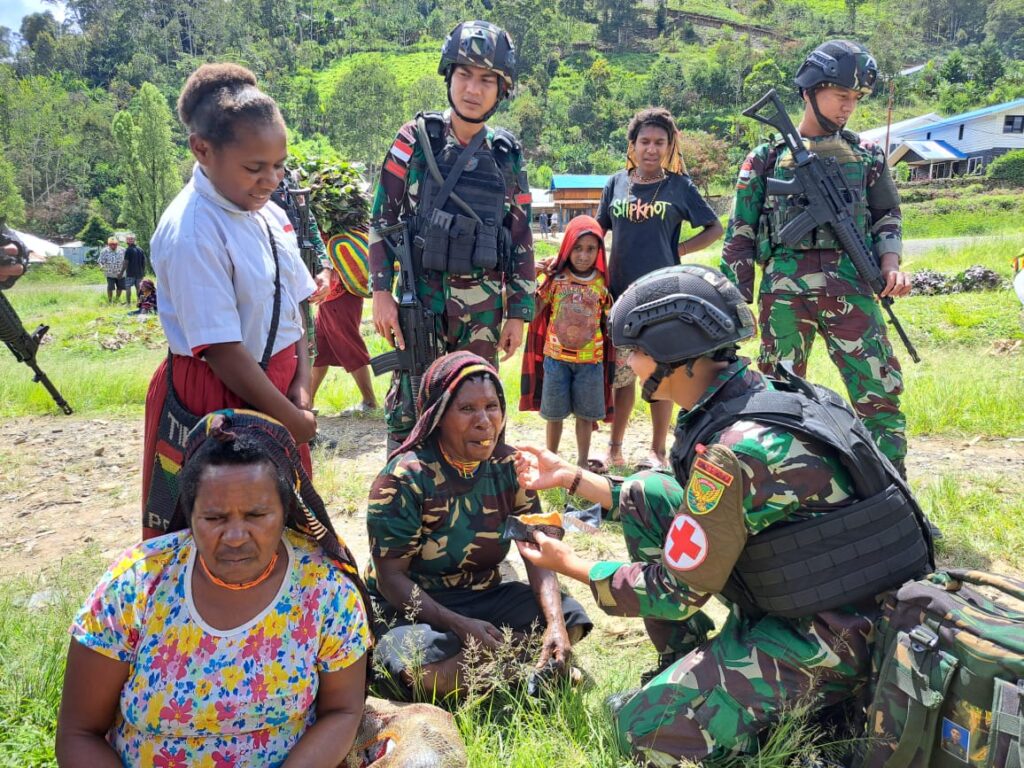 Tolikara ~ Pelaksanaan Tugas di wilayah Distrik Kanggime oleh Satgas Yonif Raider 142/KJ Pos Apter Kanggime tinggal menghitung hari, namun layanan kesehatan kepada masyarakat masih dilakukan dengan melakukan Puskesmas Keliling di Wilayah Distrik Kanggime, Kabupaten Tolikara, Provinsi Papua Pegunungan, Rabu (12/4/2023)