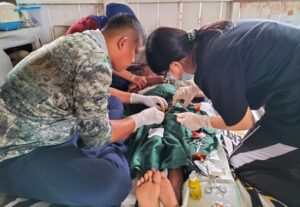 Keerom - Dua orang warga dari Kampung pedalaman yang didampingi petugas Puskesmas setempat mendatangi Pos Kotis Satgas Yonif 143/TWEJ untuk...