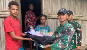 Keerom - Sebagai wujud kepedulian terhadap sesama Satgas Yonif 143/TWEJ Pos Ubrub mengunjungi dan memberikan bantuan peralatan sekolah kepada DP...