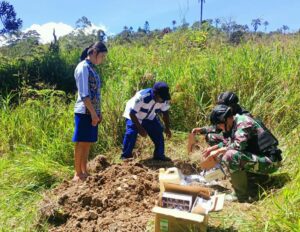 Mamberamo Tengah ~ Satgas Yonif Raider 142/KJ melakukan pendampingan pemusnahan obat-obatan Kadaluarsa bersama dengan Puskesmas Eragayam di Distrik Eragayam, Kabupaten...