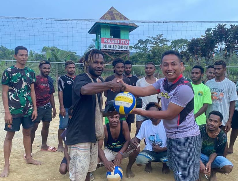 “Sebagai wujud apresiasi untuk lebih meningkatkan keakraban dan kebersamaan, pada kesempatan ini Satgas memberikan bantuan bola berikut net voli,” tambah Danpos Yuruf.