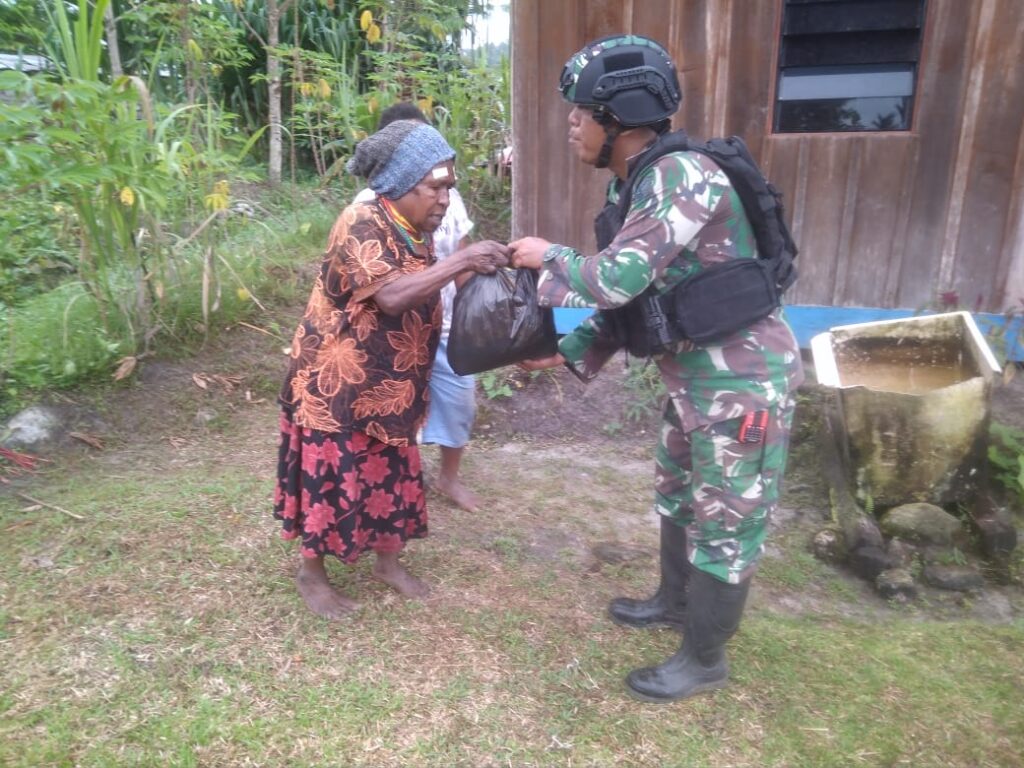 Inilah yang dilakukan Satgas Yonif Raider 142/KJ pos Kotis Elelim dengan membagikan Sembako dengan beberapa warga sekitar Pos Kotis Distrik Elelim, Kabupaten Yalimo , Provinsi Papua Pegunungan, Sabtu (01/04/2023)