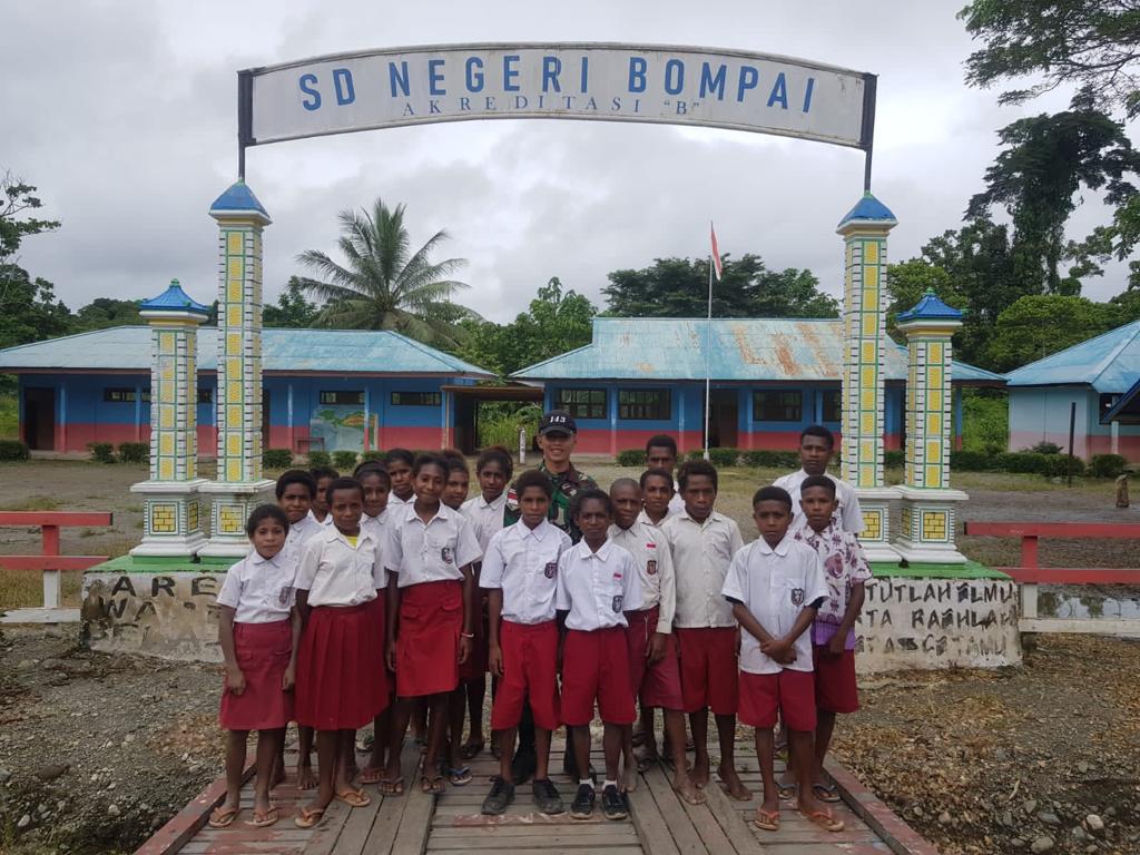 “Kami sangat berterima kasih dan sangat senang atas bantuan dari anggota Pos Bompay Satgas Yonif 143/TWEJ dengan penuh dedikasi membantu kami untuk mengajarkan baris berbaris dengan harapan dapat membentuk karakter disiplin dan loyal/setia untuk menghadapi tantangan masa depan,” terang Yulius Lapu, S.Pd., Kepala Sekolah SDN Bompay.