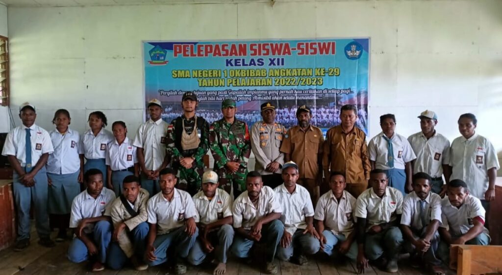 Pegunungan Bintang – Sebagai wujud keterikatan batin Satgas Yonif 143/TWEJ Pos Okbibab menghadiri acara pelepasan siswa-siswi kelas XII SMAN 1 Okbibab di Kampung Abmisibil, Distrik Okbibab, Kab. Pegunungan Bintang, Papua Pegunungan, Selasa (18/04/2023).
