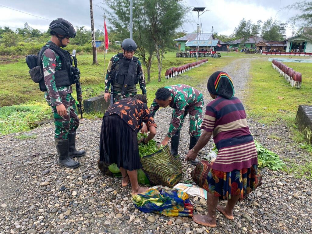Yahukimo ~ Dalam rangka membantu meningkatkan perekonomian masyarakat Yahukimo, Satgas Yonif Raider 200/BN Pos Kotis Dekai membeli hasil kebun dari masyarakat di Distrik Dekai, Kab. Yahukimo, Papua Pegunungan.