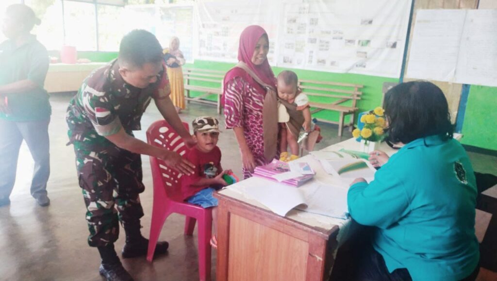 SENTANI – Mendukung program pemerintah khususnya dibidang kesehatan, Babinsa Koramil 1701-01/Sentani, Sertu Kurdi melaksanakan pendampingan kepada petugas Posyandu Balita di Aula Balai kampung Nendali Distrik Sentani Timur, Kabupaten Jayapura. Senin (8/5/2023)